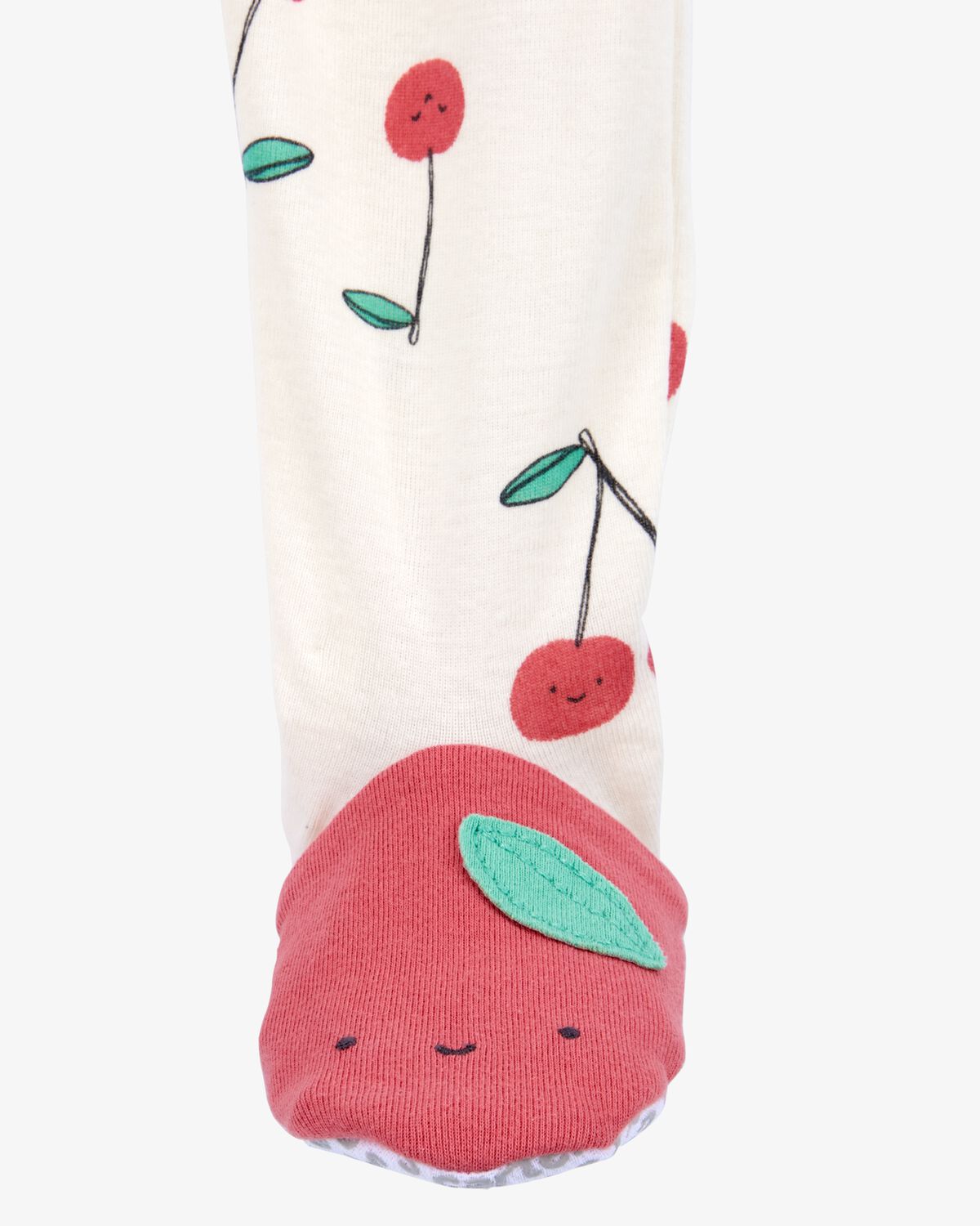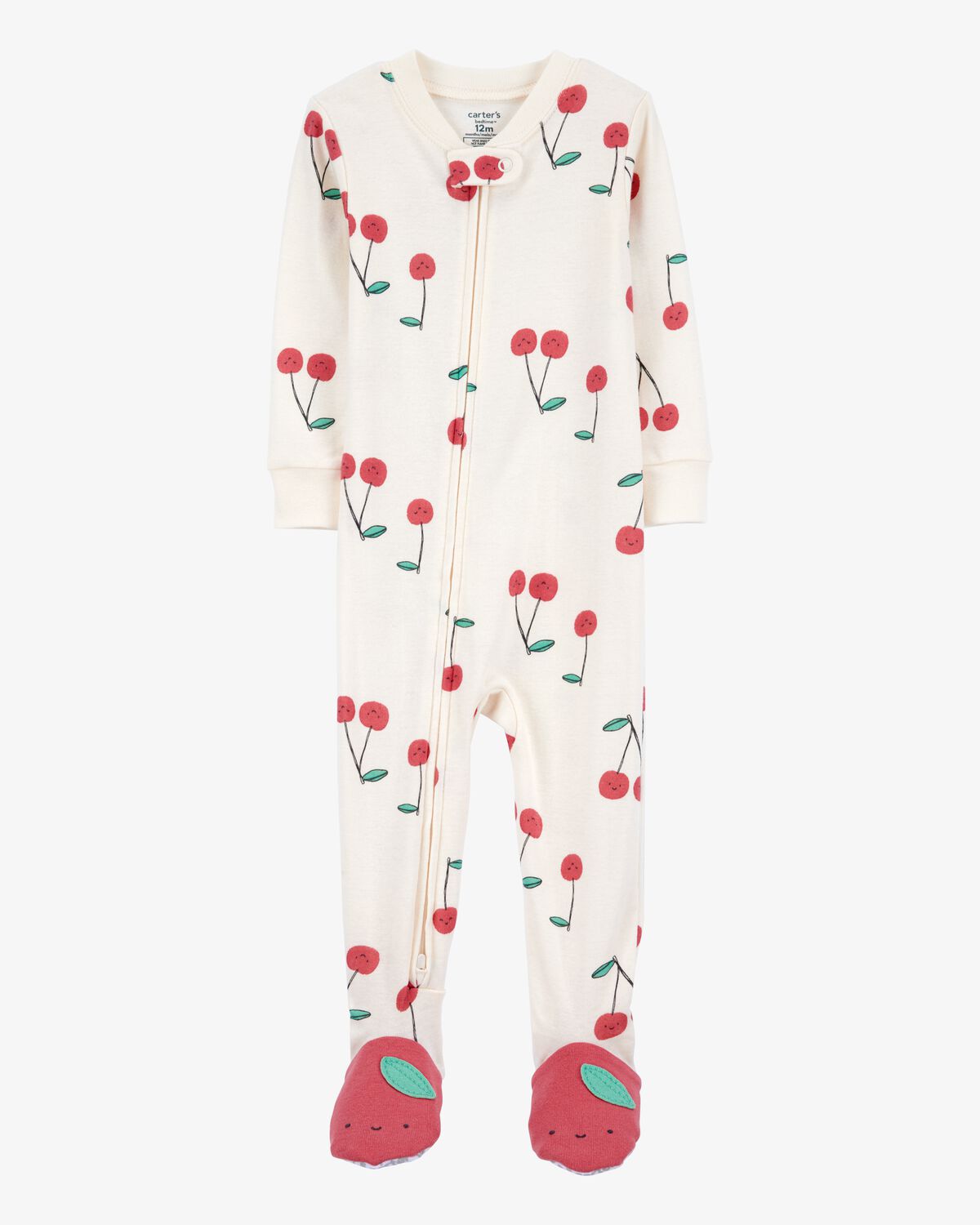 Baby Girl Cherry Print Snug Fit Cotton Footie 1-Piece Pajamas – White
