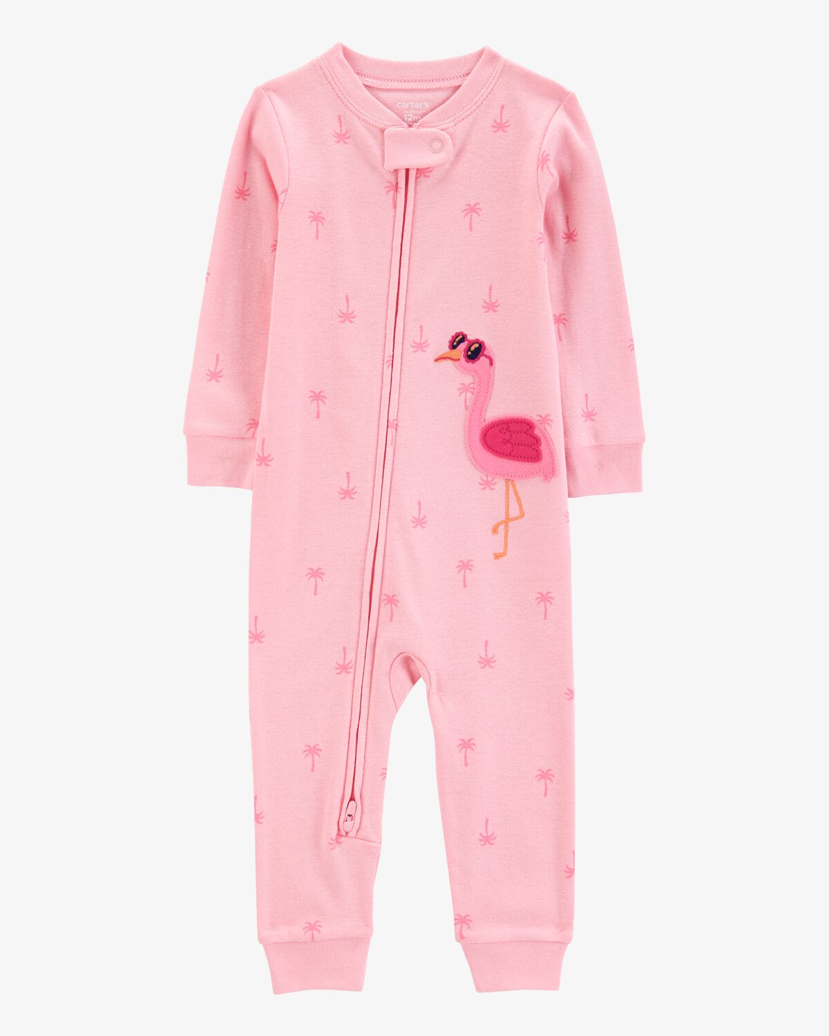 Toddler Girl Flamingo Print Snug Fit Cotton Footless 1-Piece Pajamas – Pink